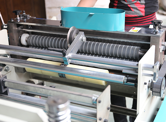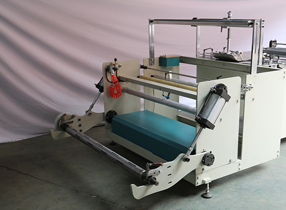 本机是热切机组的组成部分:适用于BOPP片材料的折合具有自动双面胶带、上珠光膜,滚齿纵封(与超声波发生器配套使用)、筒料破口(别加破口机构)等功能